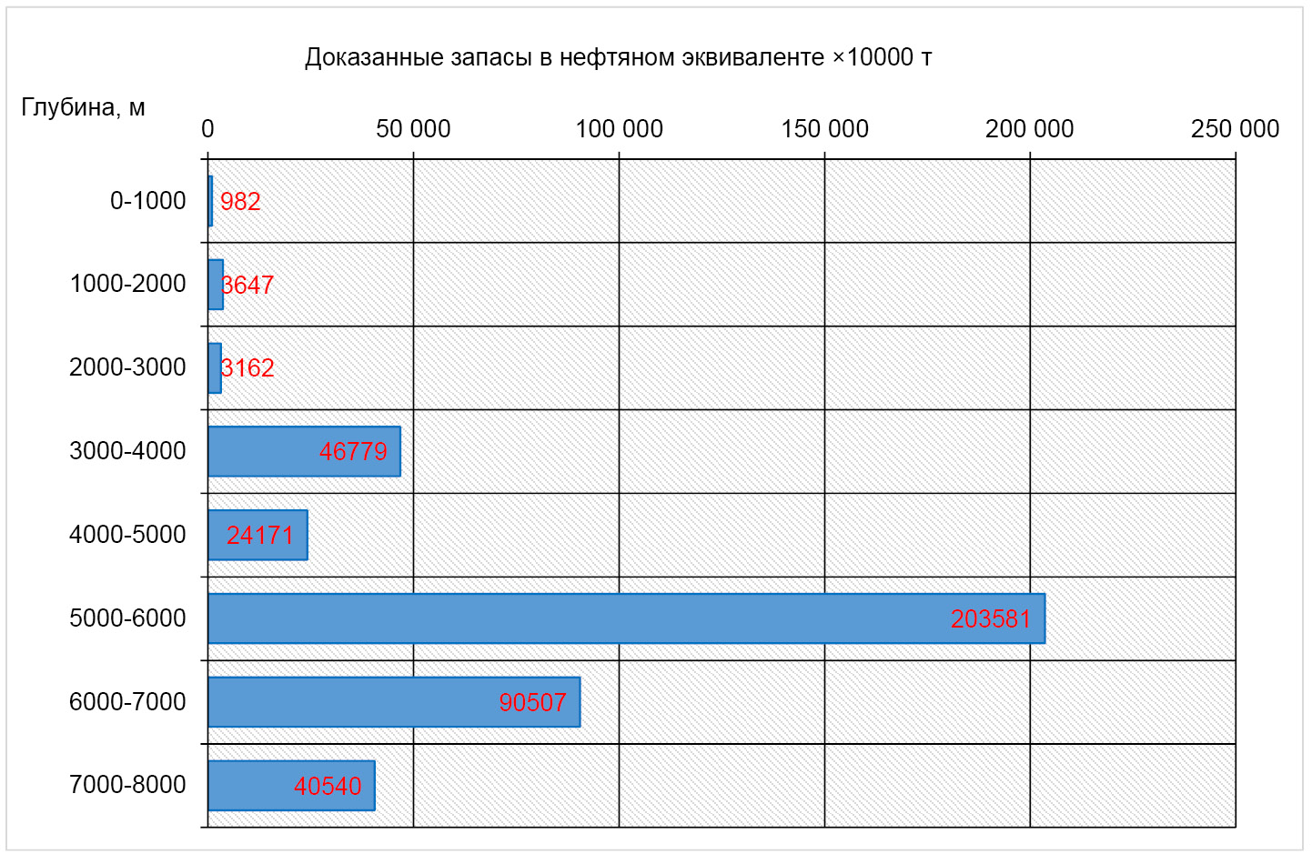 Рисунок 4. Распределение доказанных геологических запасов бассейна Тарим по глубине [30]