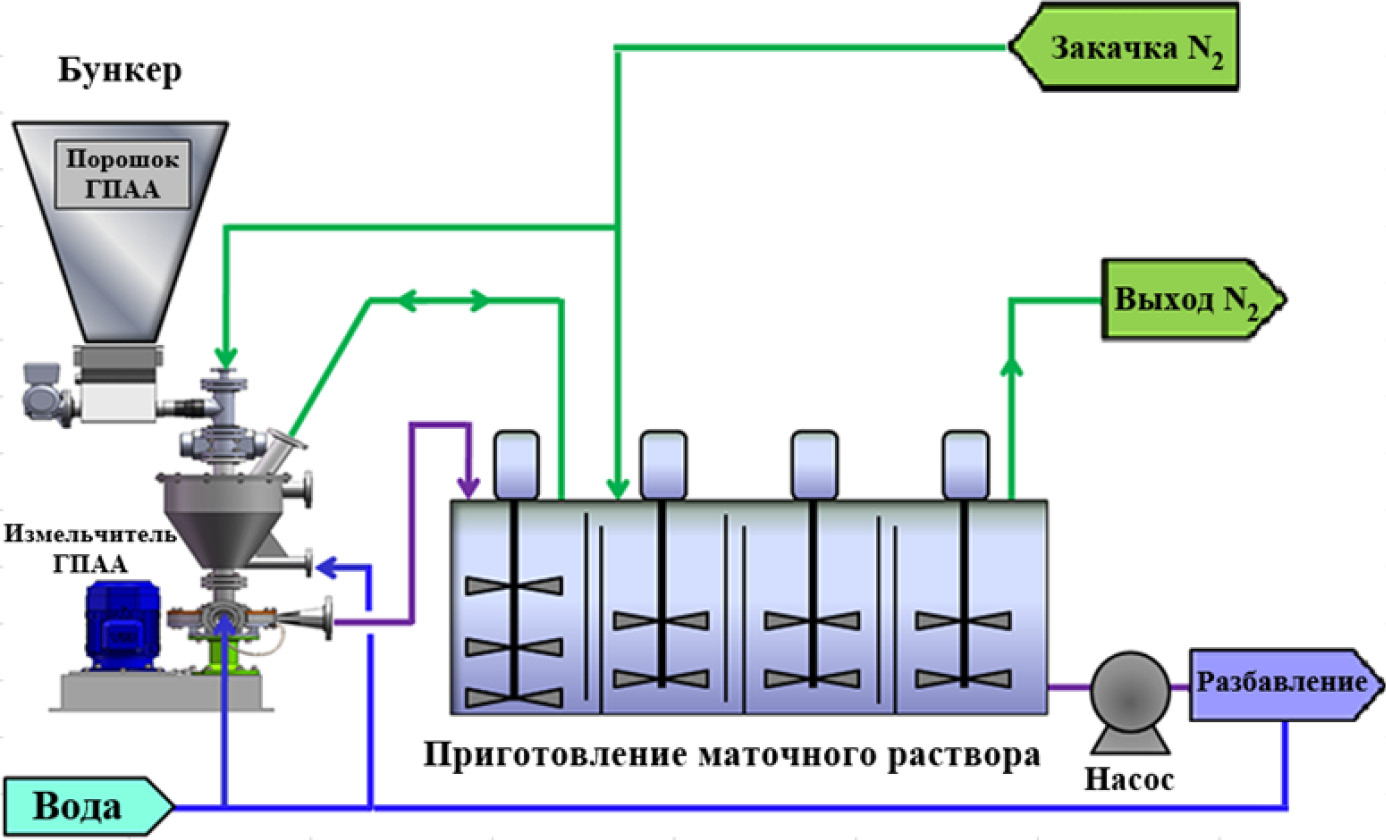 - В качестве реагента предлагается использовать ГПАА, т.к. в большинстве мировых проектов хМУН применялся этот вид полимера в силу их высокой приемистости, упруговязкостных свойств, длительной стабильности, экономичности и доступности по всему миру.