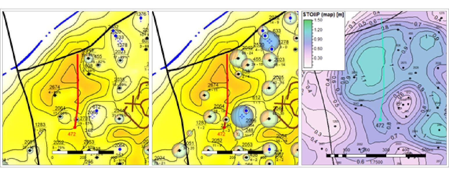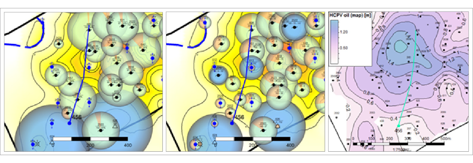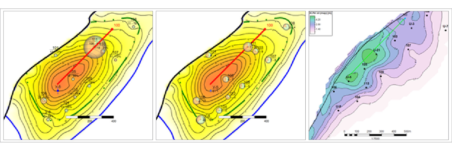 При заложении ГС №100 за основание были взяты данные соседних скважин и последняя геолого-гидродинамическая модель. Целевой горизонт Ю-I коррелируется по всем соседним скважинам, мощность продуктивных интервалов составляет около 10 м. Все соседние скважины работают с высокими показателями добычи нефти. Показатели карты остаточных подвижных запасов нефти высокие.