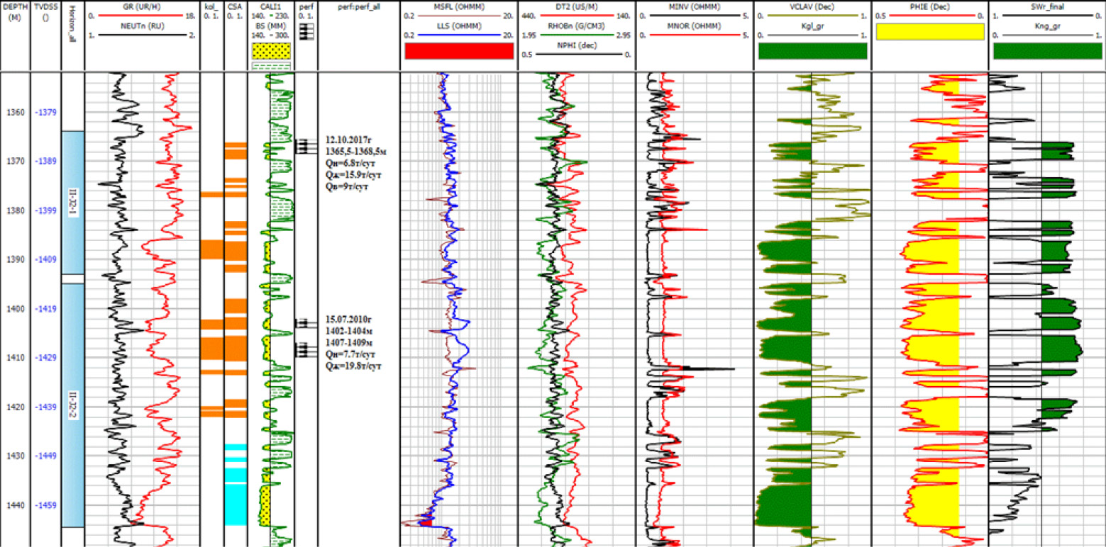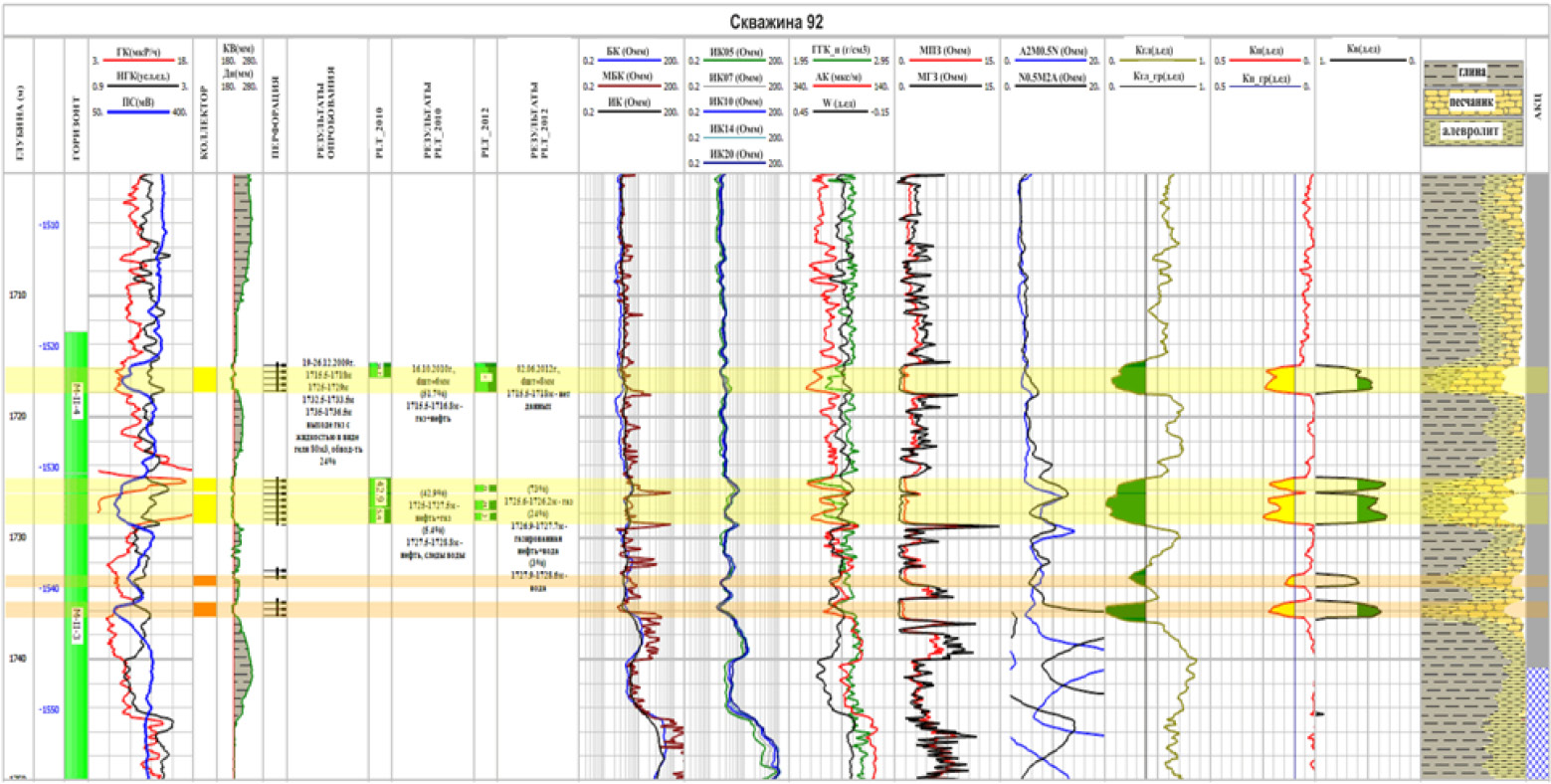 Применение данного метода было обусловлено неоднозначностью показаний электрического каротажа против нефте- и водонасыщенных коллекторов, а также получением достаточно низких коэффициентов нефтенасыщенности в продуктивных пластах.
