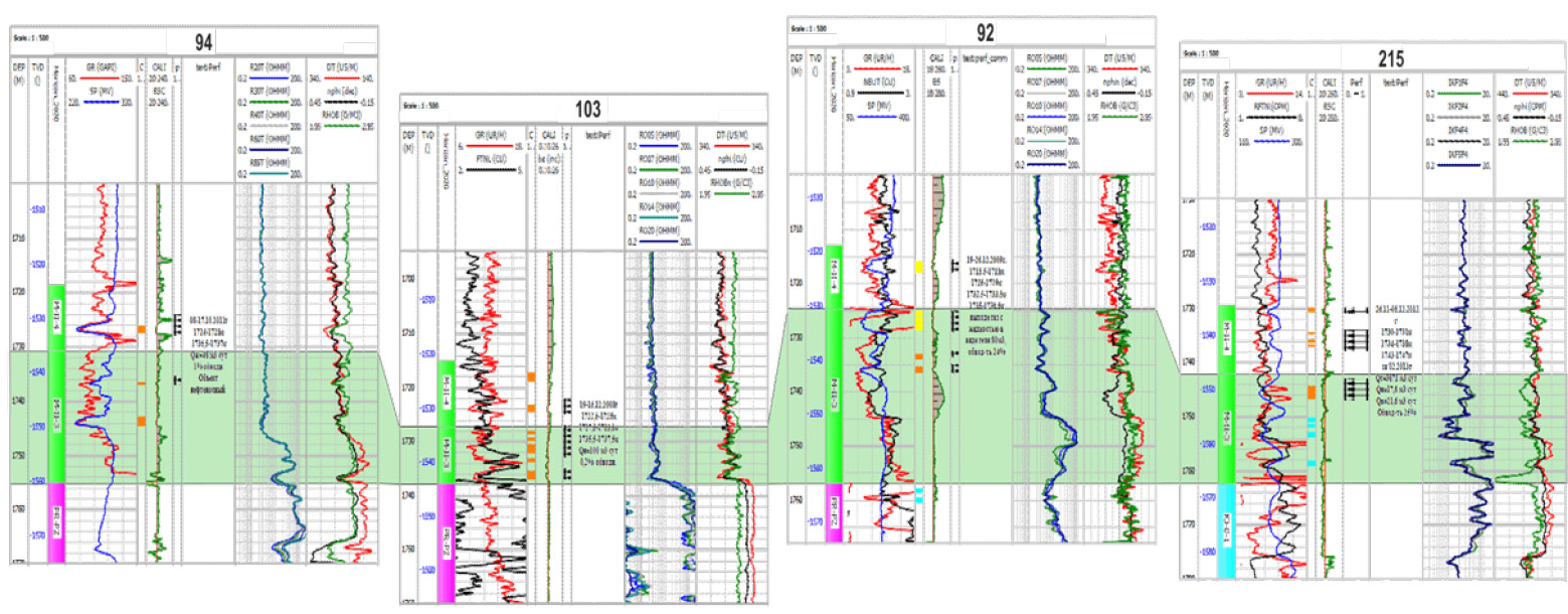 Figure 5. Correlation scheme for wells No. 25-106-11-228 of the IV Neocomian and I Jurassic horizons of the South Western Kamyshitovoye field