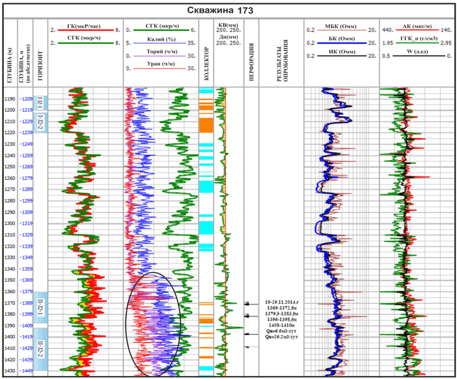 Рисунок 12. Скважина 173 месторождения Ботахан (юрский горизонт II-J2)