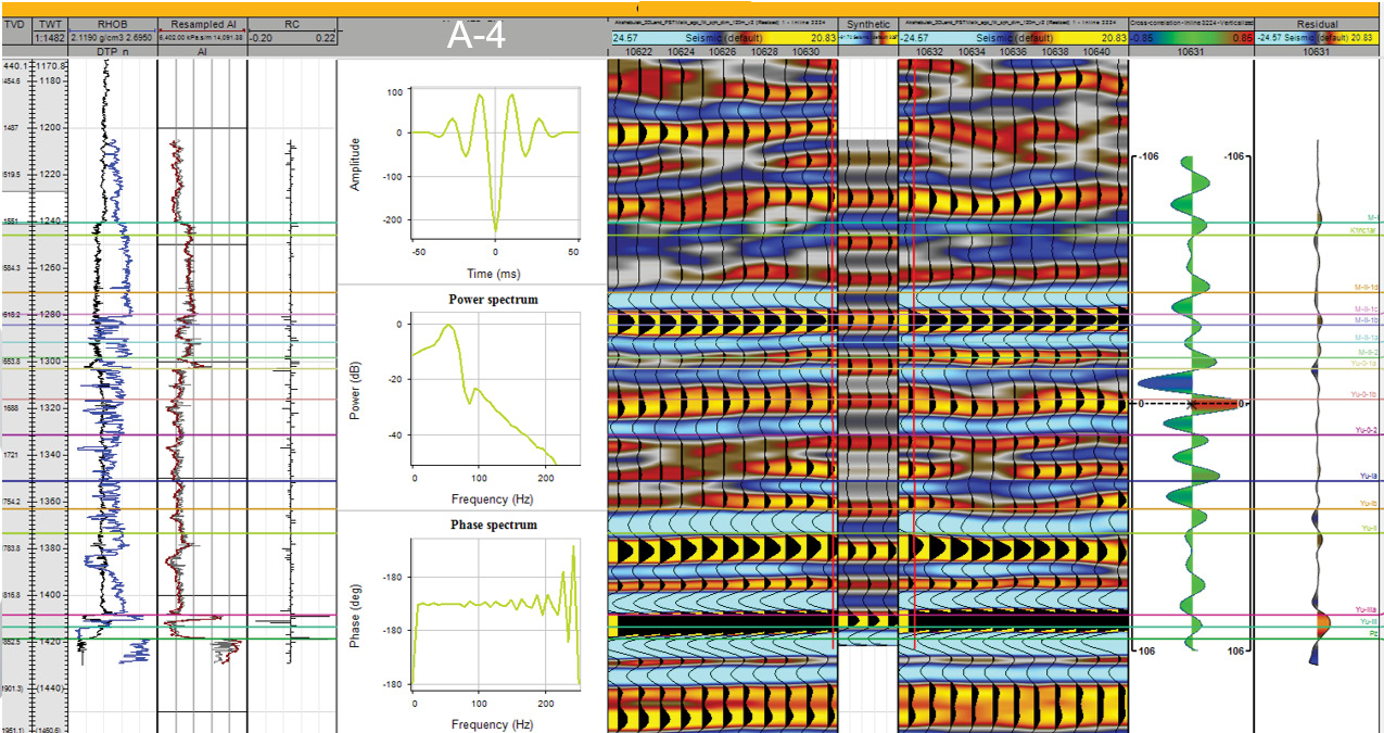 Рисунок 5. Привязка скв. А-4 к полнократному сейсмическому кубу