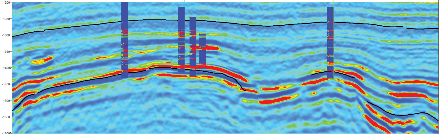 Рисунок 2. Привязка скв. А-1 к полнократному сейсмическому кубу