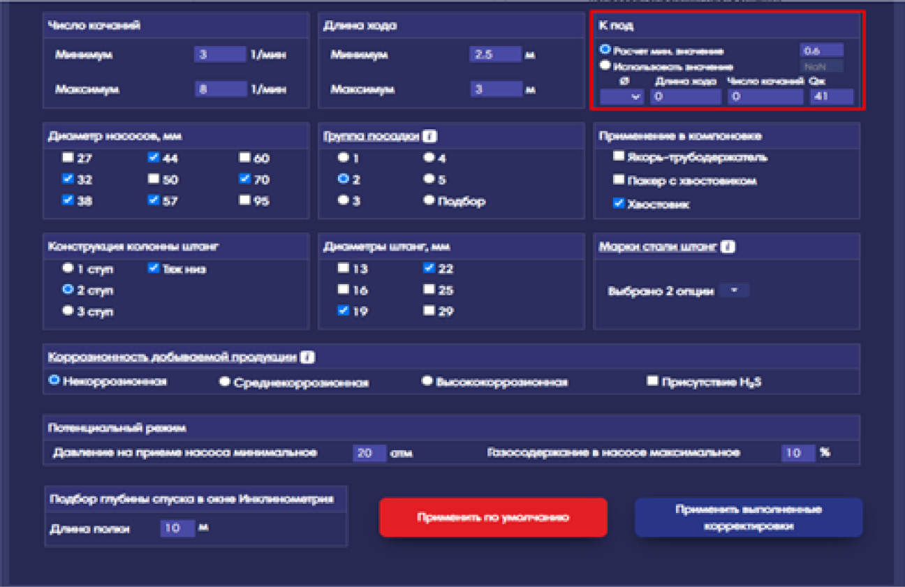 Коэффициент подачи определяется как произведение вышеперечисленных коэффициентов. Расчёт данным способом происходит для всех отобранных кейсов для уточнения диаметра ШГН и режима откачки.