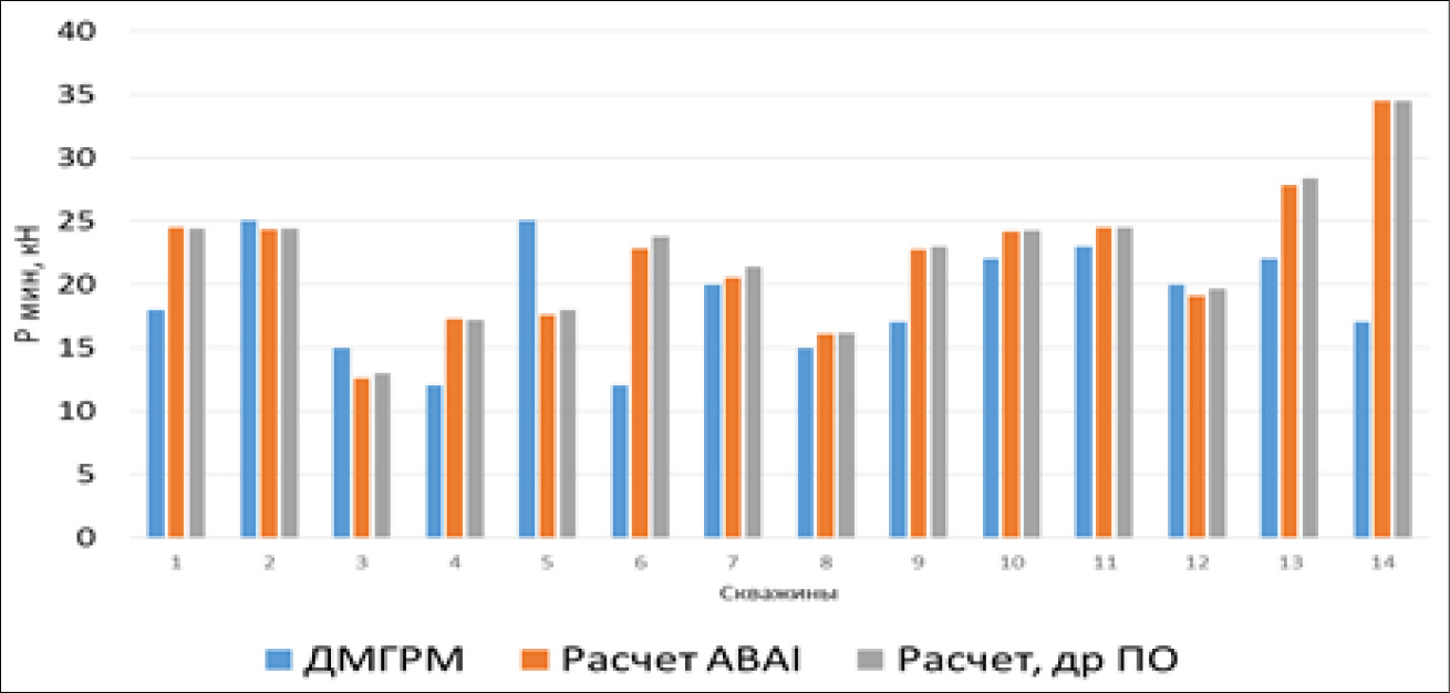 Учитывая хорошие результаты, полученные по сходимости максимальной и минимальной нагрузки, рассчитанные в другом ПО, можно предположить, что высокие отклонения на ряде скважин по минимальной нагрузке, вероятно, связаны с недостоверными входными данными (отклонения от расчёта в другом ПО на этих скважинах не превышают 2%).