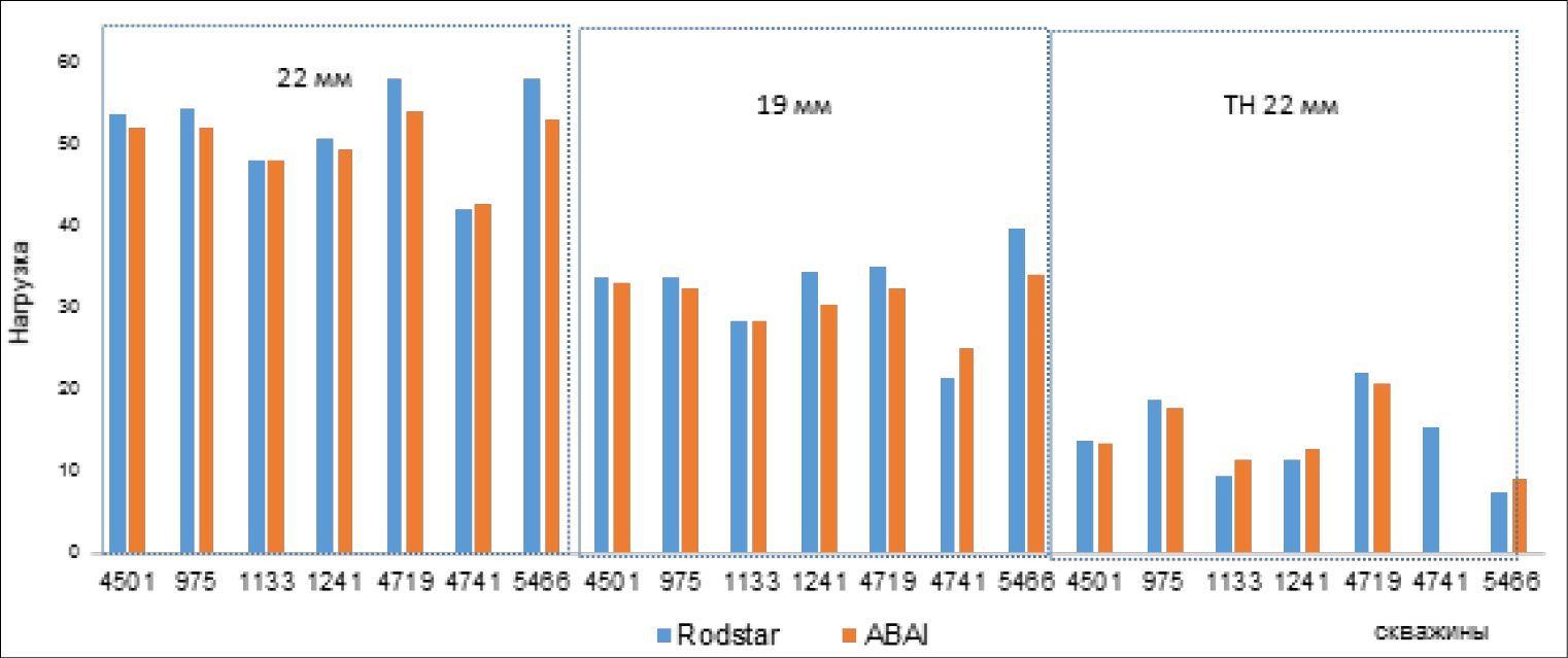 Рисунок 8. Сравнение максимальной нагрузки в точке подвеса штанг, кН