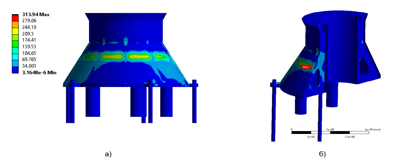 Рисунок 8. Распределение механического напряжения для платформы среднего размера (максимальное напряжение 314 МПа)