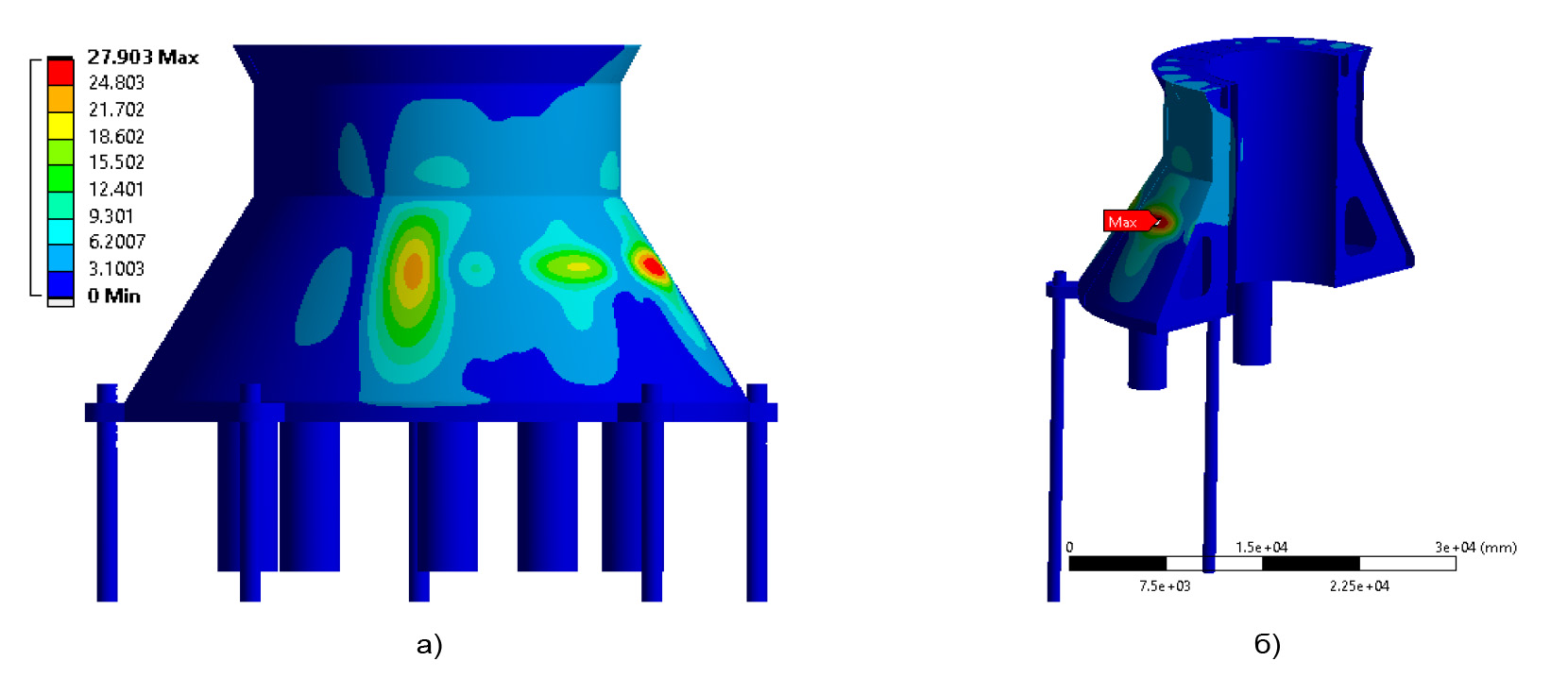Figure 9. Medium-sized platform deformation (maximum deformation 28 mm)
