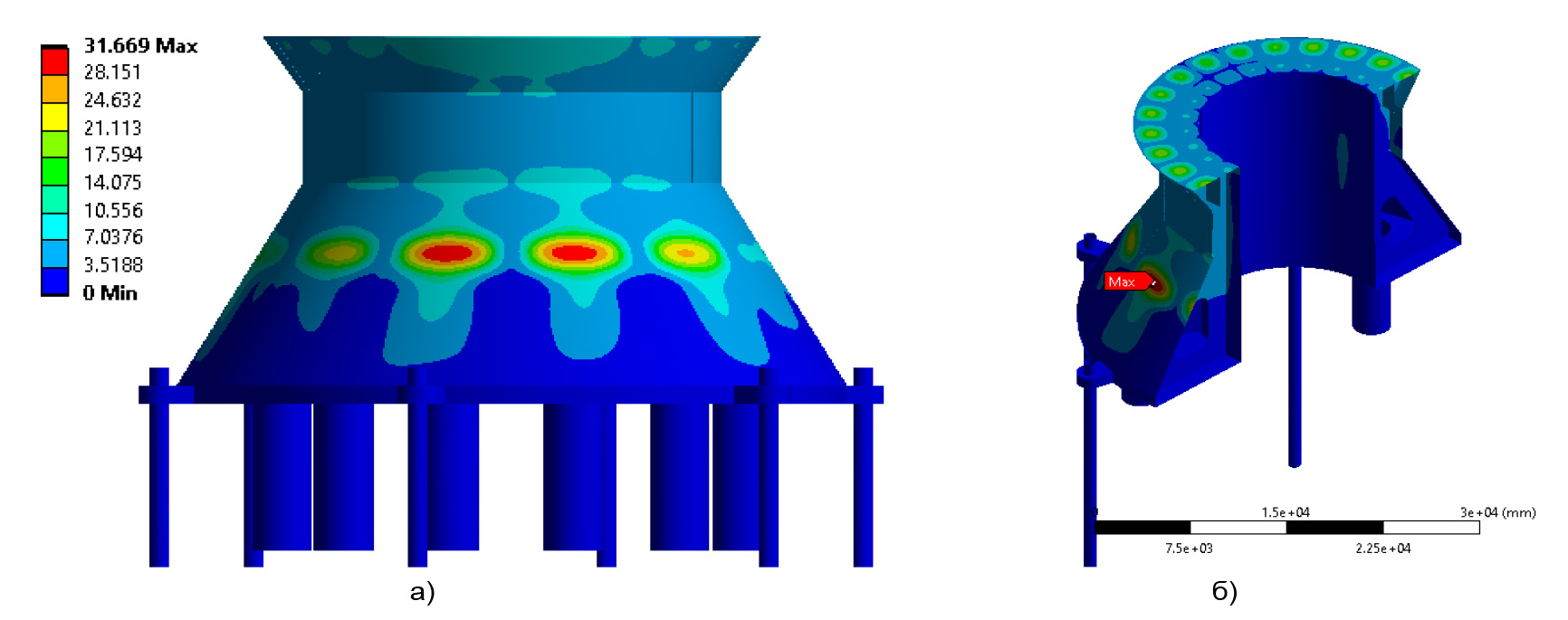 Рисунок 11. Деформация максимальной платформы (максимальная деформация 32 мм)