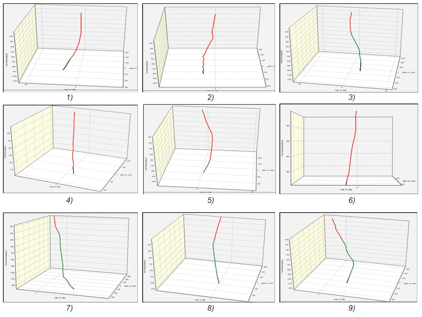 Инклинометрия скважин влияет на контактные силы между колонной НКТ и колонной штанг. Ниже на рис. 2 представлены профили скважин, полученные в ПО RodStar на основе инклинометрии скважин.