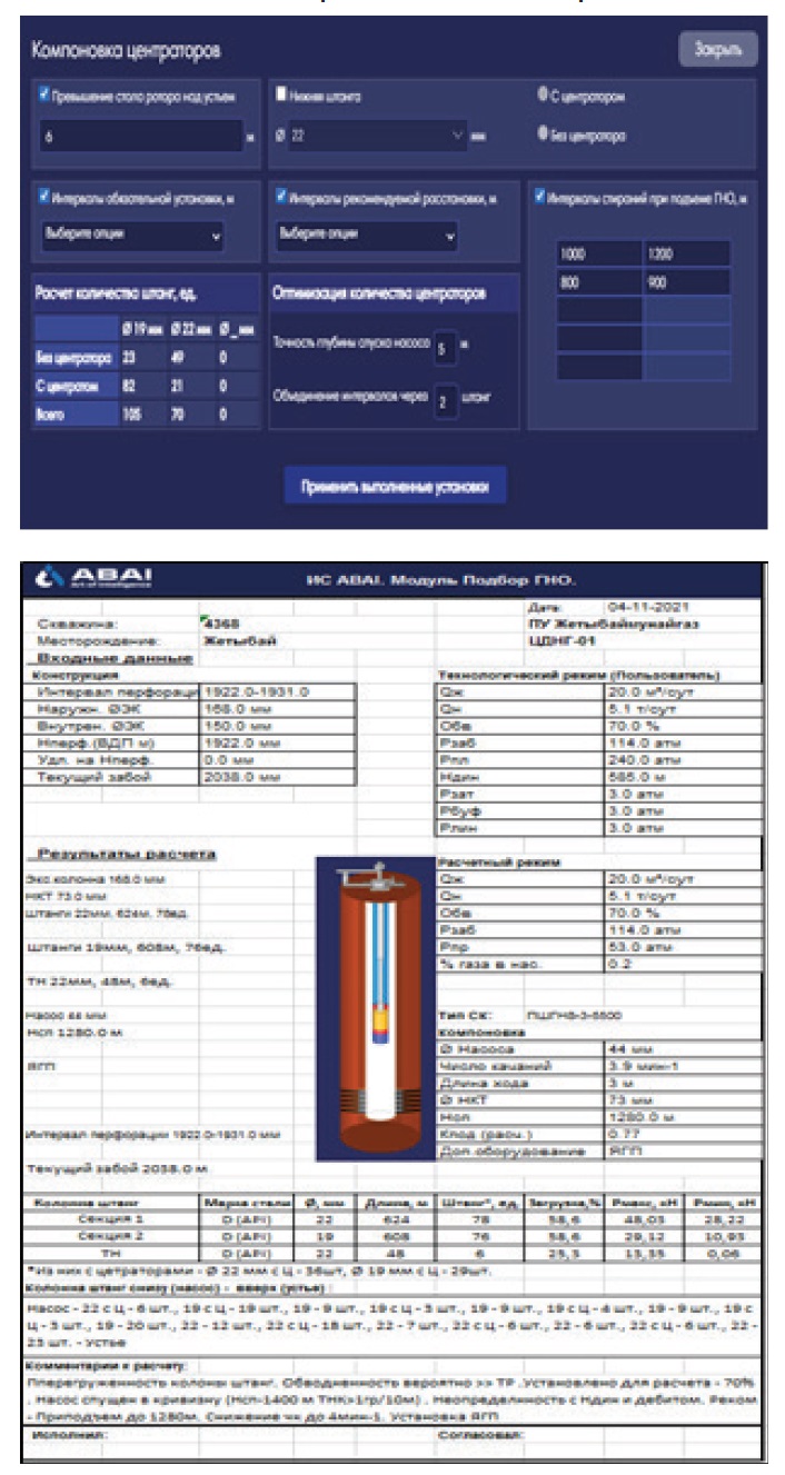In order to minimize the contact of the rod with the tubing, a high-quality selection of the rod layout is required with further lowering of the pump rods with a centralizer. The software is an excellent tool for modeling sucker-rod pumping units (SRP), as well as for optimizing layouts of current SRP systems.