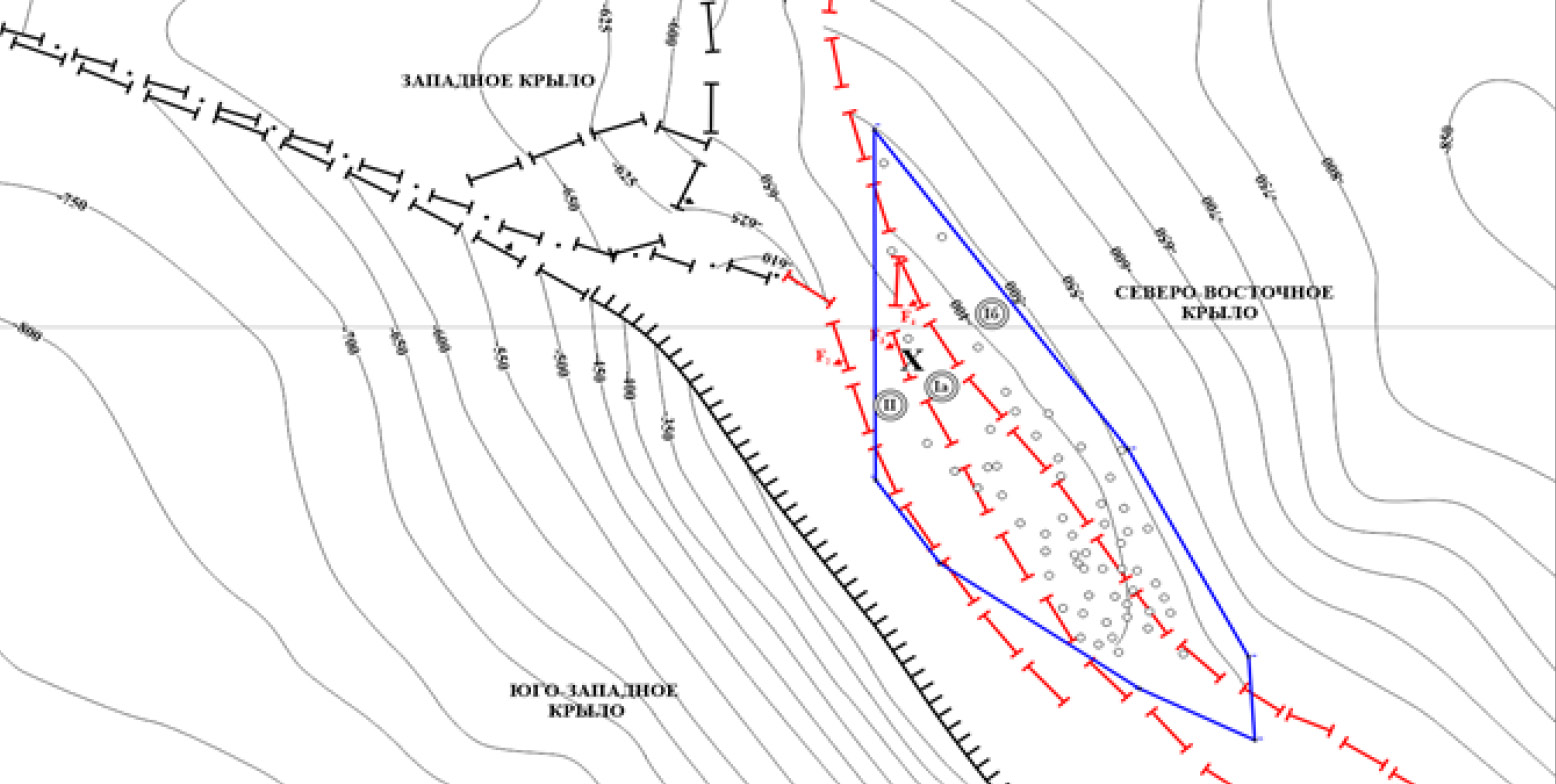 Месторождение Х приурочено к со- ляно-купольной структуре, которая имеет 3 крыла, примыкающих к центральному грабену: западное, юго-западное и северо-восточное (рис. 2). Промышленная нефтеносность установлена на северо-восточном крыле, в меловых и среднеюрских отложениях и на приграбеновой ступени – в аптских отложениях. В результате поисково-разведочного и в дальнейшем эксплуатационного бурения на северо-восточном крыле структуры было выявлено 7 нефтегазовых горизонтов в среднеюрских отложениях, 1 нефтеносный горизонт в среднеальбских и 1 нефтеносный горизонт в аптских отложениях.