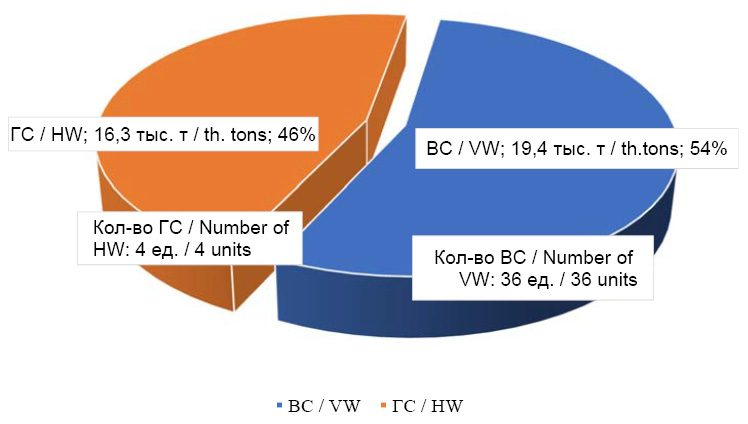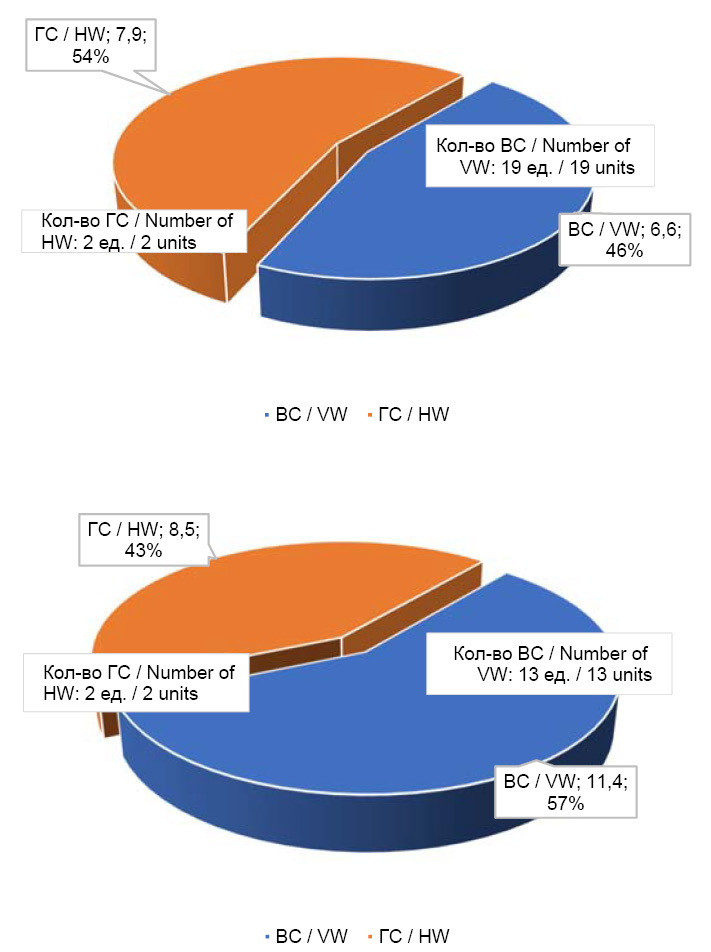 Таблица 2. Сопоставление начальных и текущих параметров ВС и ГС Table 2. Comparison of VW and HW initial and current parameters
