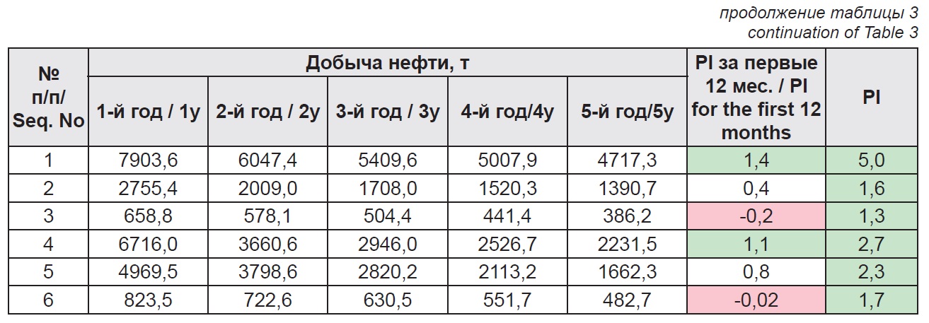 В табл. 3 приведены сопоставление показателей ВС и ГС и результаты оценки рентабельности, чтобы отразить эффективность реализации ГС в экономической части. Дебит ВС взят как средний дебит действующего фонда, добыча последующих годов рассчитана снижением добычи с помощью утвержденного темпа падения данного месторождения.