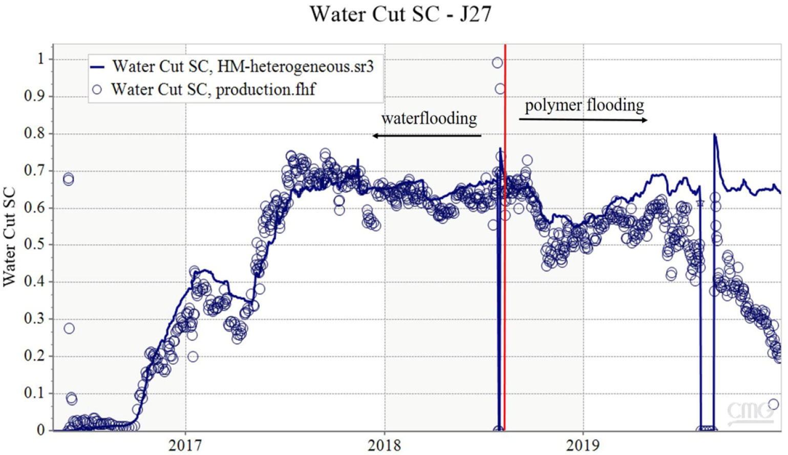 A recent literature review showed that among dozens of field cases, none reported a dramatic injectivity loss [25], contrary to the fears expressed by engineers after running simulations. The main reasons behind are threefold: an oversimplified reservoir model (geology, grid), inaccurate mathematical equations [26] and an improper use of polymer-related inputs.