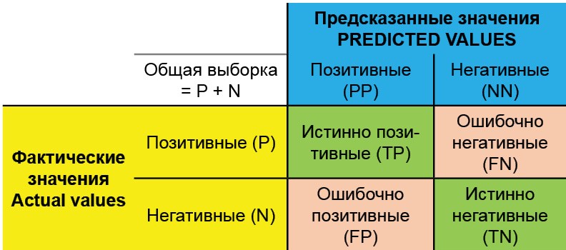 Оценка классификатора выполняется на основе матрицы ошибок (Confusion Matrix). Матрица ошибок – это метрика производительности классифицирующей модели (рис. 11) [6]. Согласно данной матрице оценка проводилась по трём метрикам: accuracy, F1 score и MCC.