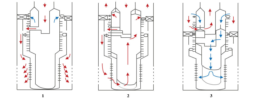 1 – положение прямого потока / forward flow position; 2 – положение циркуляции / circulation position; 3 – положение обратного потока / reverse flow position