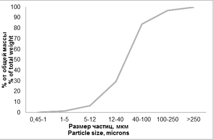 Рисунок 2. Кумулятивная кривая распределения зерен пластового песчаника, скв. X