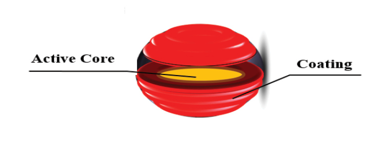 The author has extensively investigated a wide variety of autonomous healers, thus in the next proposes a "self-healing" concept of the affected cements, which consists in sealing the water supply channels with chemically inert modifying additives previously introduced into the cement powder, meant to be activated and acquire the ability to block cracks in the cement stone only after interaction with reservoir water [5, 6]. The principle of the "self-healing" cement operation is to start the water-absorbing mechanism of the additives integrated into regular cement powder. The additive consists of an active water-swelling core covered with a solid water-soluble shell (fig. 1), which temporarily prevents a contact of the water-swelling core with water. Besides, the shell must prevent premature hydration within a cementing time – a time after injecting cement slurry into the well and its setting [7].