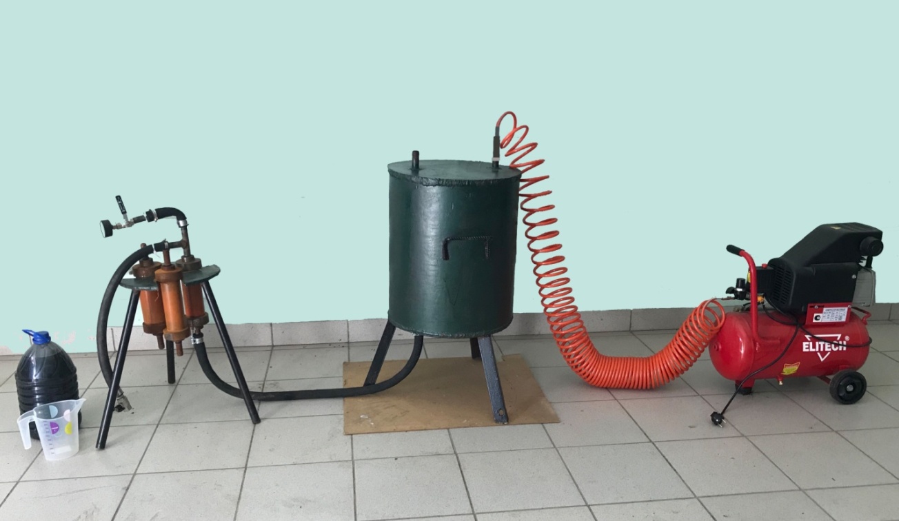 To test the validity of the concept and the proposed "self-healing" cement formulation, a technique was developed using specially manufactured test-bench equipment [10]. The stand was mounted on the testing site of NIPI USPTU LLC, which provided an opportunity to observe the behavior of the hydraulic system, to investigate the filtration properties of the modified cement stone, as well as to study the effect of the modifying additives on the technological properties of the cement slurry and the cement stone over time, observing them in conditions close to the ones of a well (fig. 2).