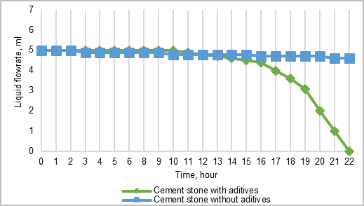 Figure 4. Study of reservoir water filtration through the cement stone samples at a temperature of 20°C and the maximum degree of mineralization