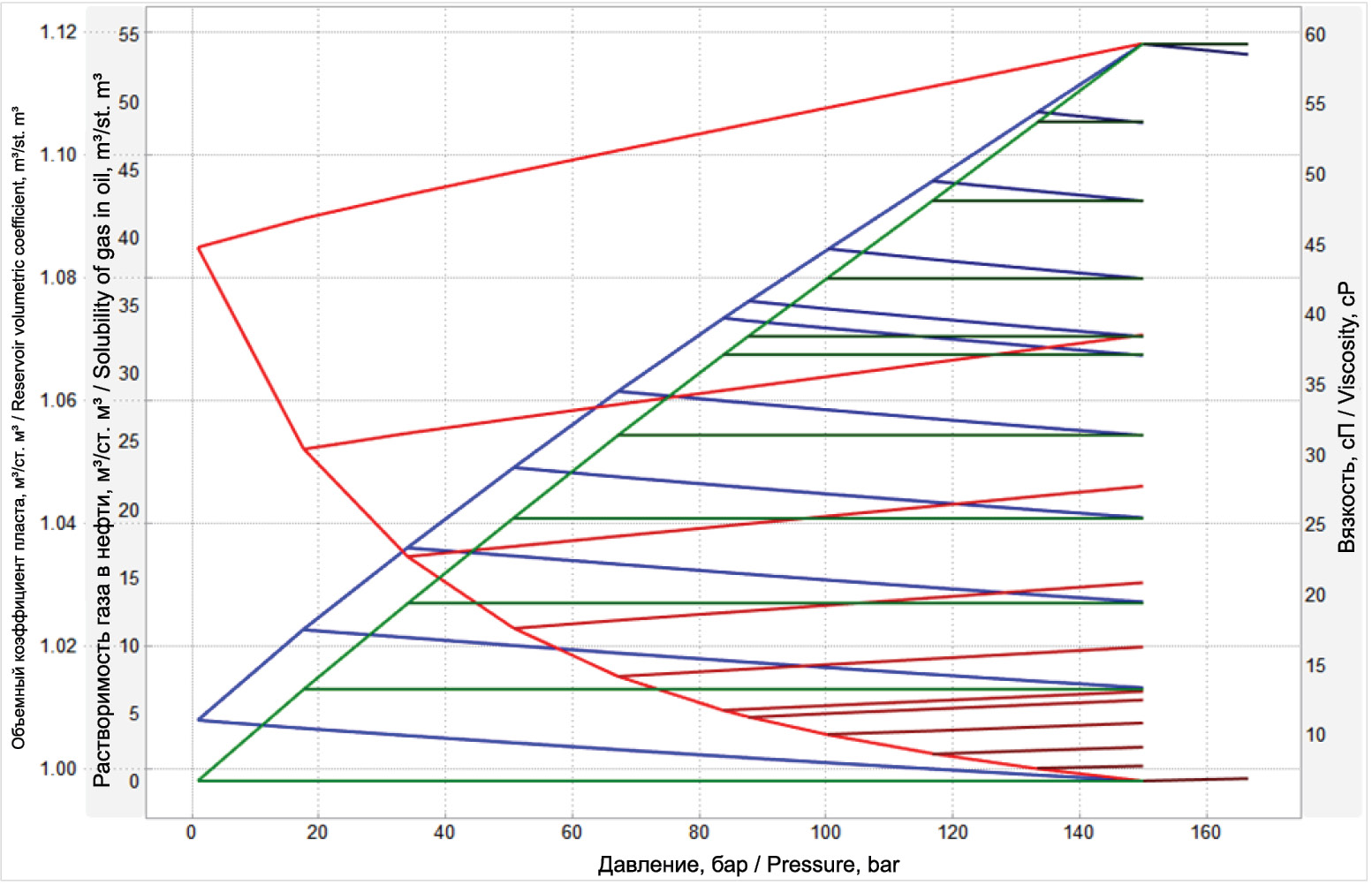 Рисунок 5. График зависимости PVT свойств флюида от давления