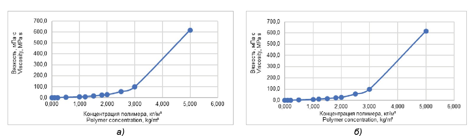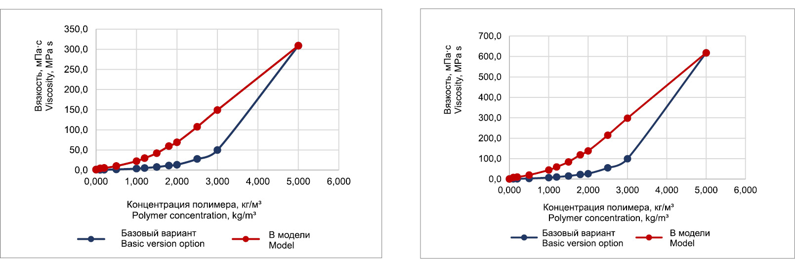 Вязкость полимера является важным параметром при рассмотрении его применения в ПЗ для повышения эффективности добычи нефти. Концентрация полимера в растворе играет существенную роль в определении его вязкости. При увеличении концентрации полимера происходит формирование длинных полимерных цепей, которые препятствуют текучести и повышают вязкость флюида. Это происходит благодаря образованию полимерной сети, которая является препятствием для движения молекул и вызывает сдвиговые напряжения внутри раствора. С увеличением концентрации полимера увеличивается количество полимерных цепей и, следовательно, вязкость растёт. Гидродинамическое моделирование позволяет проводить численные эксперименты для оптимизации параметров ПЗ, помогает исследовать влияние различных концентраций полимера на вязкость и выбирать оптимальное соотношение для повышения эффективности процесса заводнения.