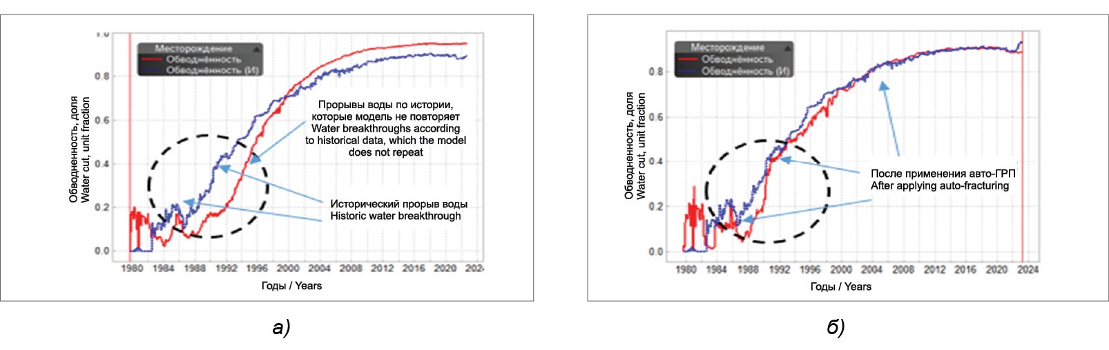 Рисунок 11. Сравнение адаптации параметра по обводненности до/после авто-ГРП