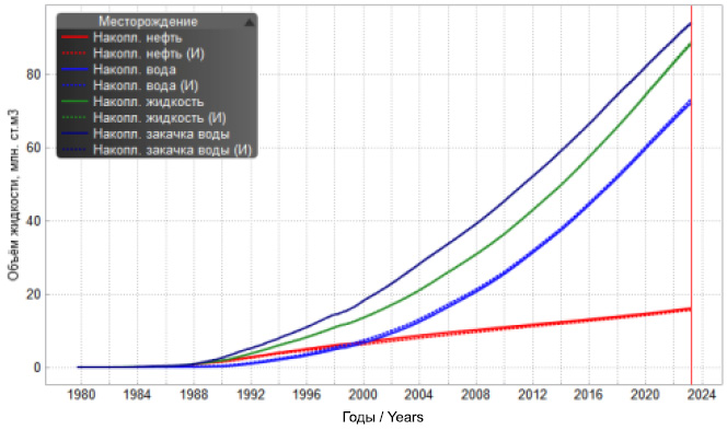 Накопленная жидкость, млн м³ Accumulated liquid, million m³ | 14,187 | 14,333 | 1,02 |