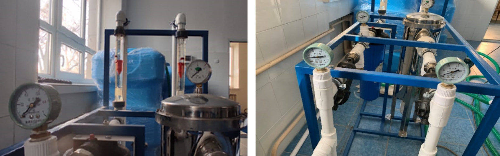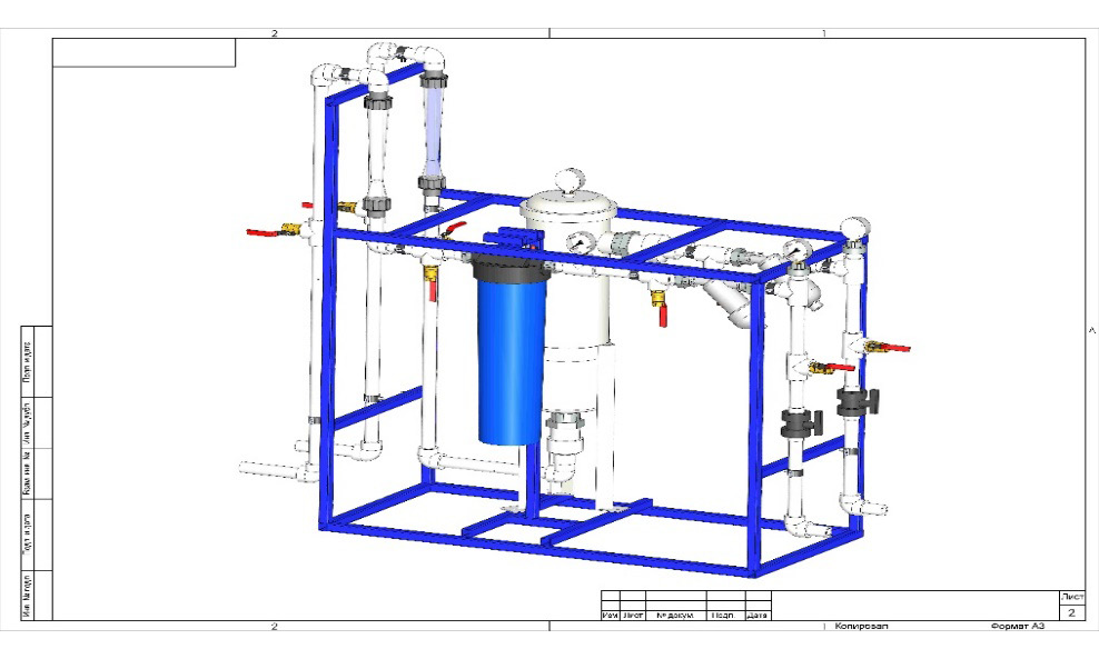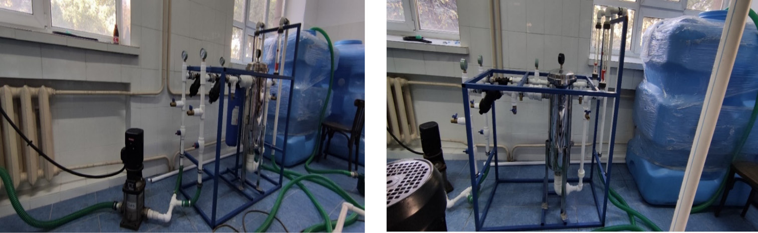 В ходе проведения работы нами был разработан испытательный стенд с несколькими ступенями механической очистки воды. Данный стенд имитировал блок предварительной очистки. В испытательном стенде были заложены две нитки, в состав которых входили дисковые, картриджные и мешочные фильтры с разными порогами фильтрации частиц.