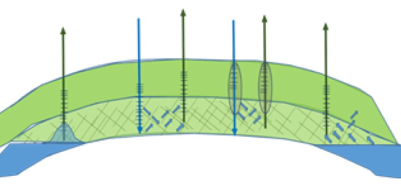 При разработке классических коллекторов с высокой проницаемостью разделить эффекты от поддержания пластового давление (далее – ППД), один из которых связан с передачей импульса или градиента давления, второй – с процессом вытеснения нефти, проблематично, потому что скорости продвижения фронта нагнетаемых вод и передачи импульса давления сопоставимые. При аномально низких проницаемостях можно выделить оба эффекта по отдельности, а, точнее, увидеть ситуацию, когда импульс давления подошёл к зоне отбора, и наблюдается восстановление пластового давления (Рпл), но роста обводнённости при этом не происходит. В данном случае скорость фронта нагнетаемых вод (далее – ФНВ) значительно меньше, чем скорость передачи импульса. Происходит капиллярная пропитка, и вода вытесняет нефть, хотя и с малой скоростью, и в этом смысле система ППД эффективна и работает.