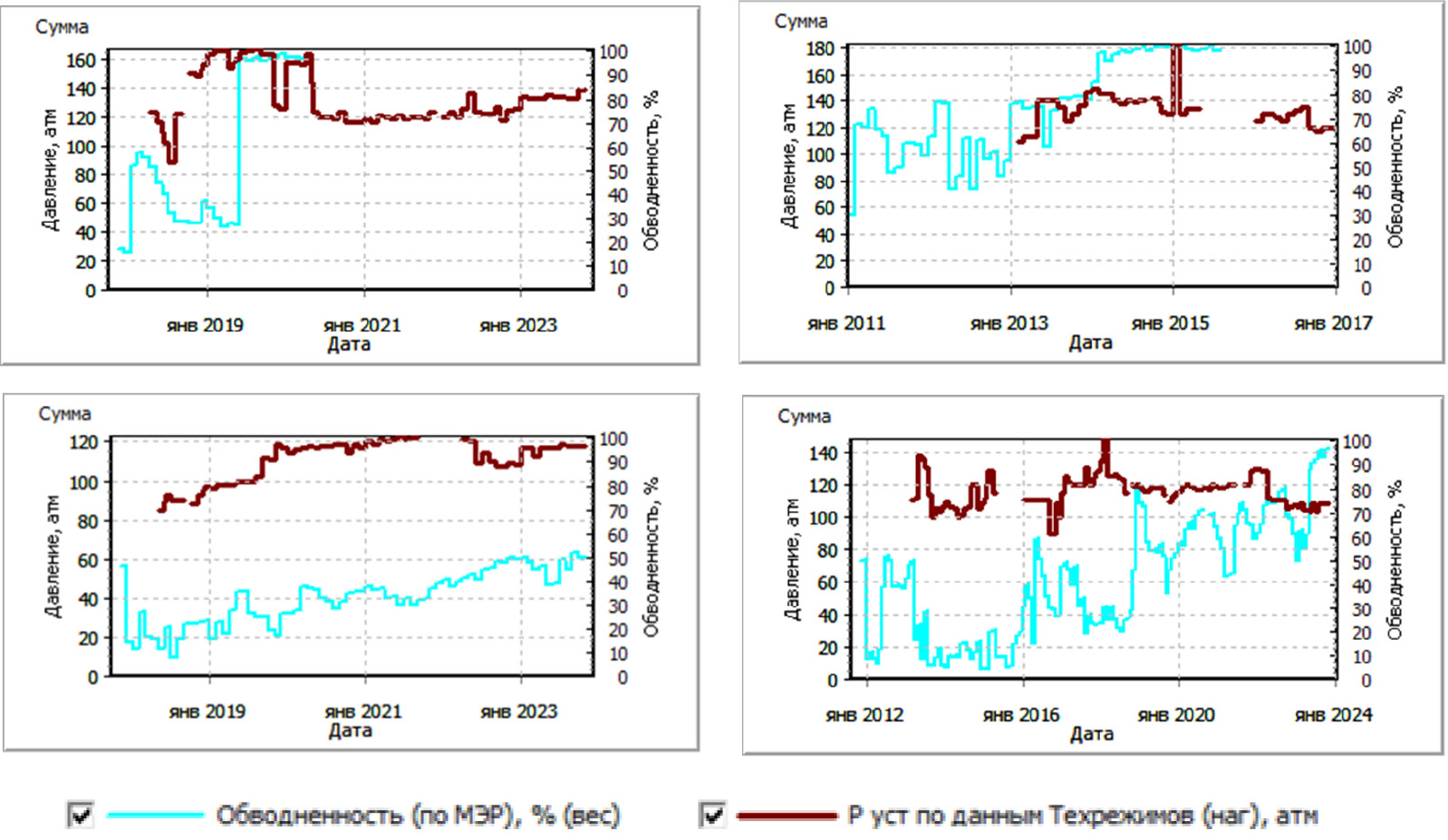 Некоторые из примененных технологий не использовали поверхностно-активные вещества (далее – ПАВ) в конце закачки. Как следствие, происходит кольматация призабойной зоны пласта (далее – ПЗП), что приведёт к потере приемистости и снижению дебитов жидкости и, соответственно, нефти окружающих добывающих скважин.