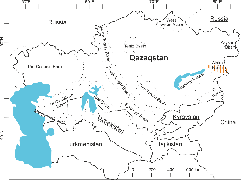 Рисунок 1. Позиция Алакольского осадочного бассейна на территории Казахстана