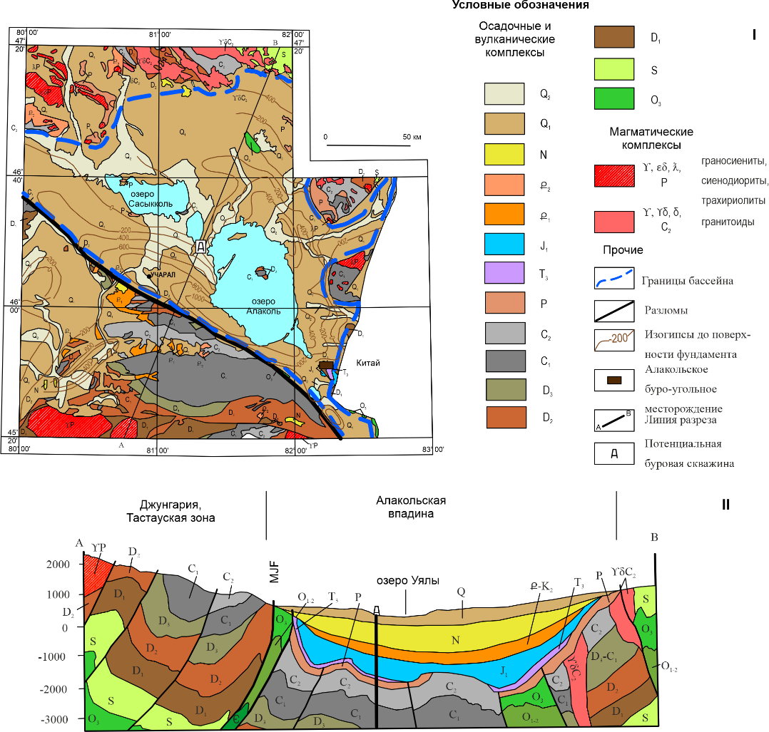Рисунок 3. Геологическое строение Алакольского бассейна