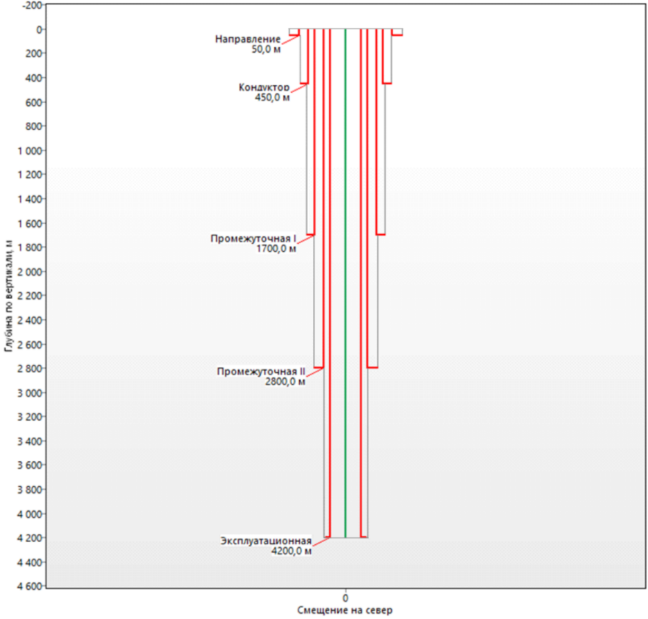 Выбор конструкции скважины – основной этап её проектирования – должен обеспечить высокое качество строительства скважины как долговременного эксплуатируемого объекта, предотвращение аварий и осложнений в процессе бурения и создание условий для снижения затрат времени и материально-технических средств на бурение [36–38].