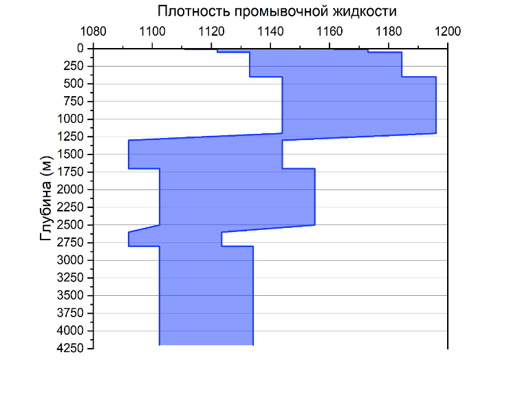 Рисунок 9. Прогнозная плотность промывочной жидкости для бурения скважины Алакольского осадочного бассейна