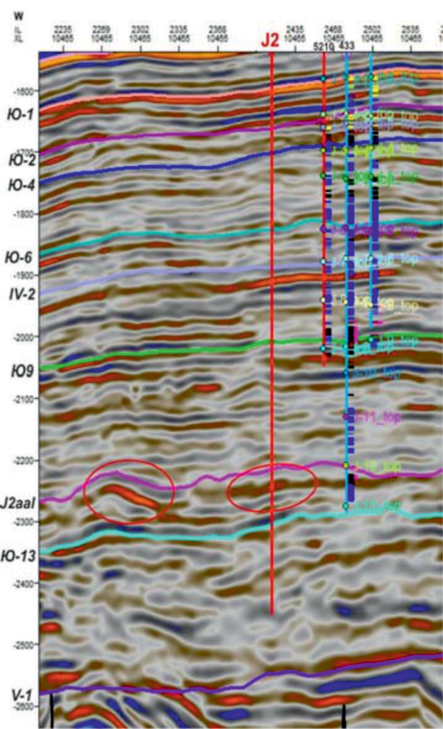 Рисунок 17. Глубинный сейсмический разрез через оценочную скважину J-2