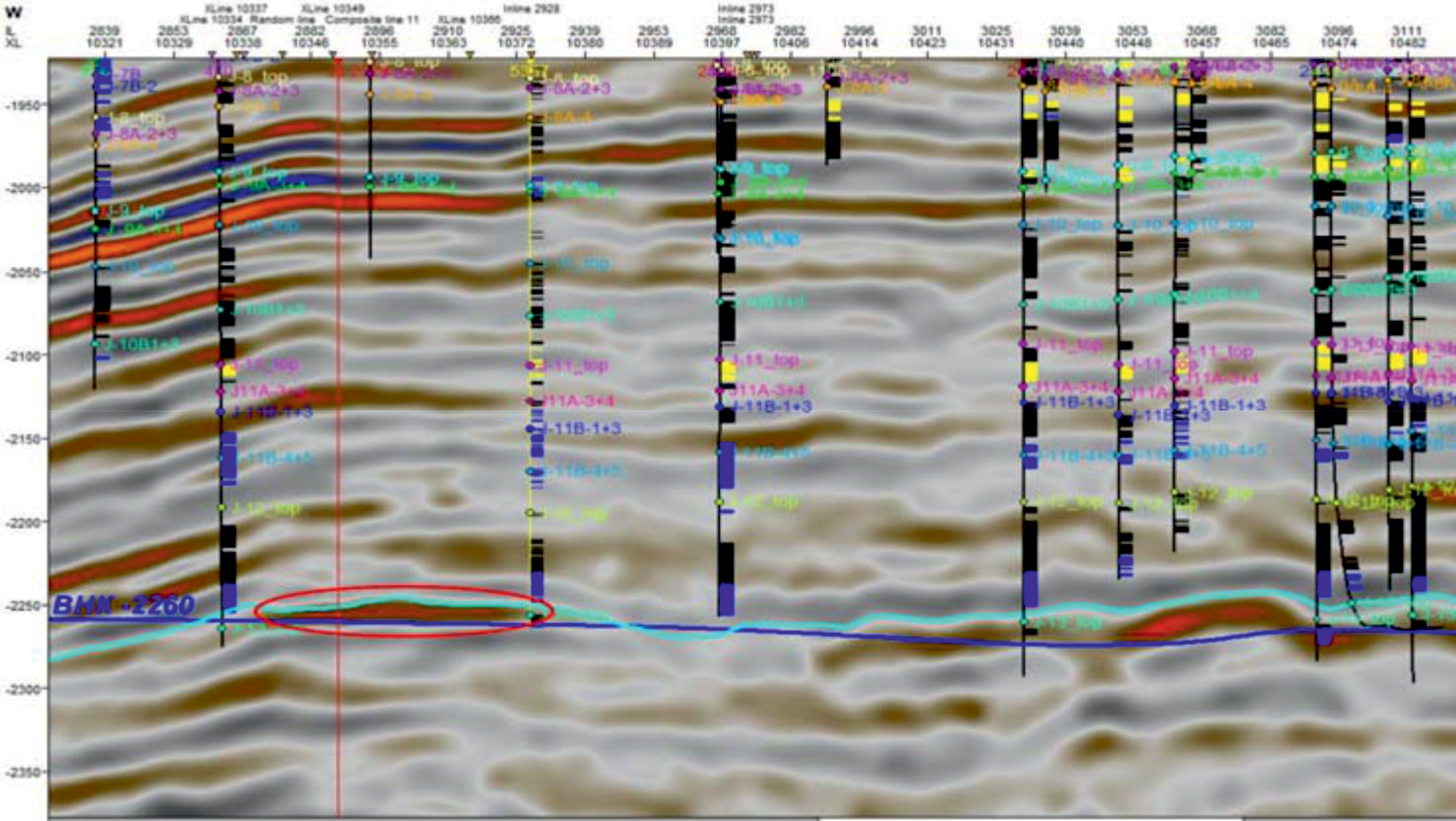Figure 20. Drilled well results on seismic data, U-12 and U-13 horizons