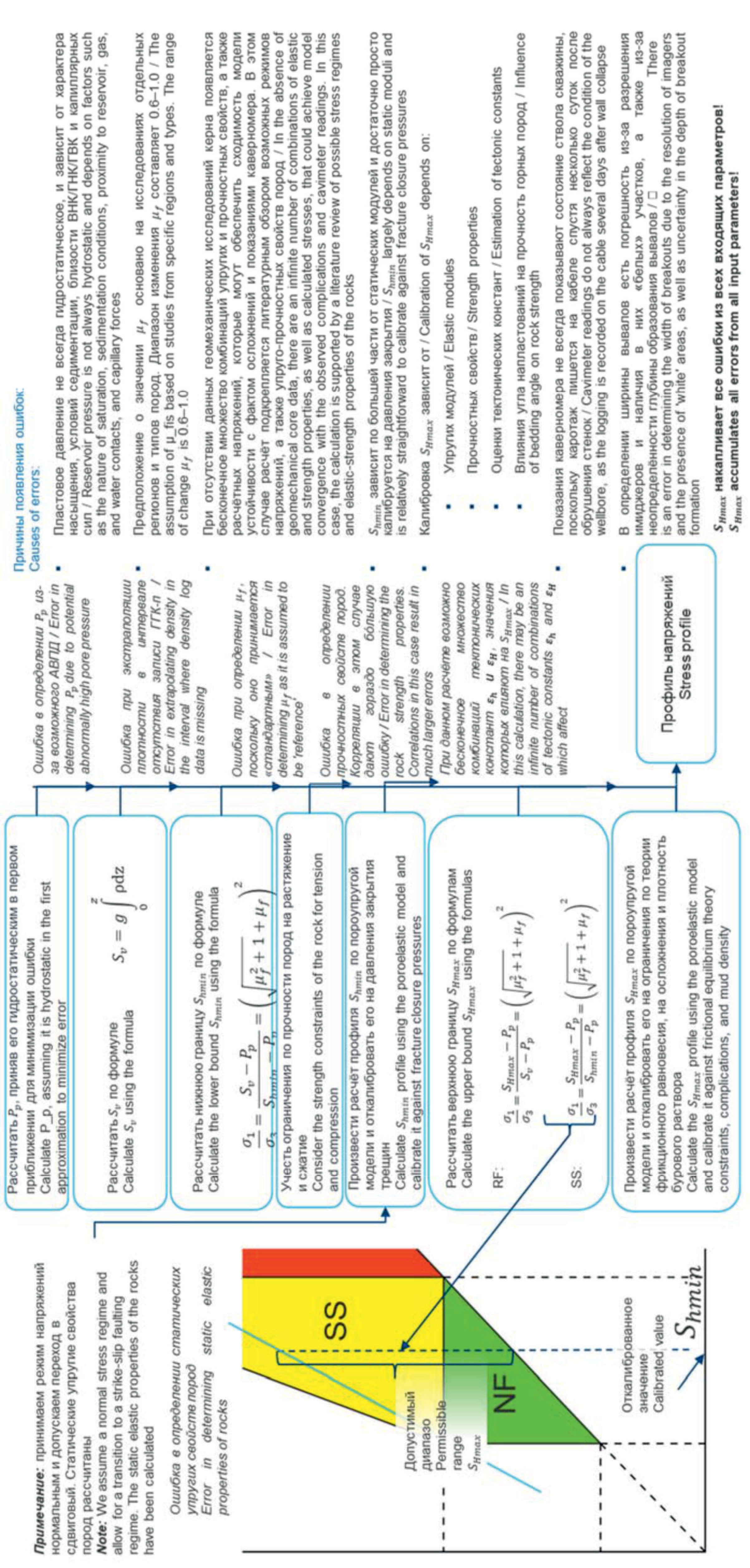 Полный алгоритм первичного расчёта SHmax обусловлен достаточно большим количеством неопределённостей и ошибок на всех этапах расчёта, как представлено на рис. 2.