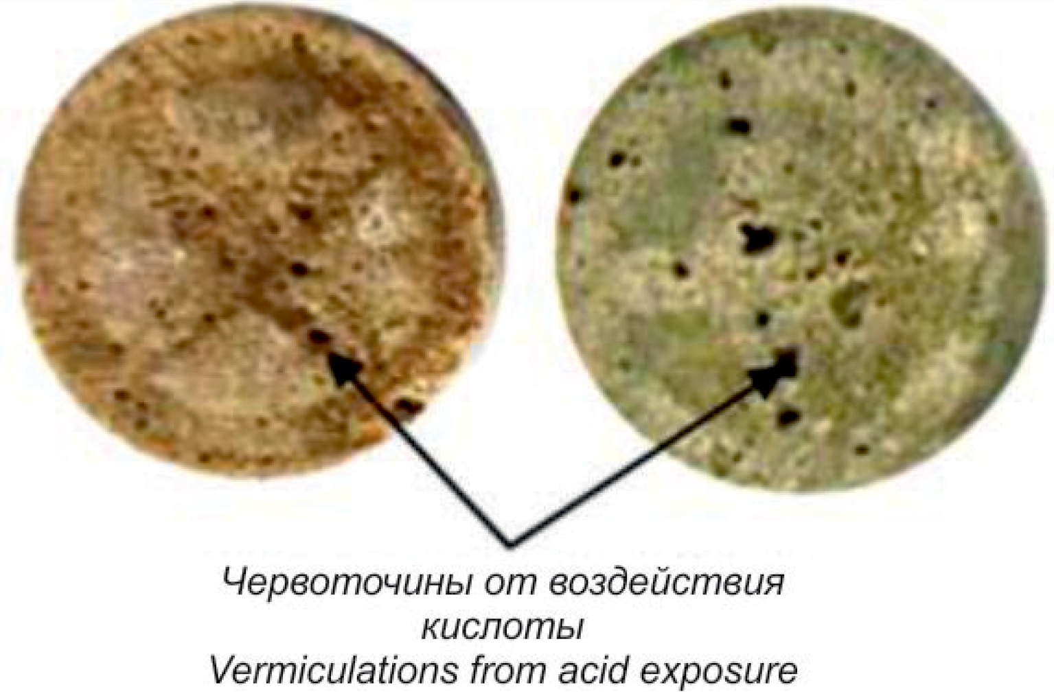 Рисунок 1. Вид керна после воздействия кислоты при матричной кислотной обработке