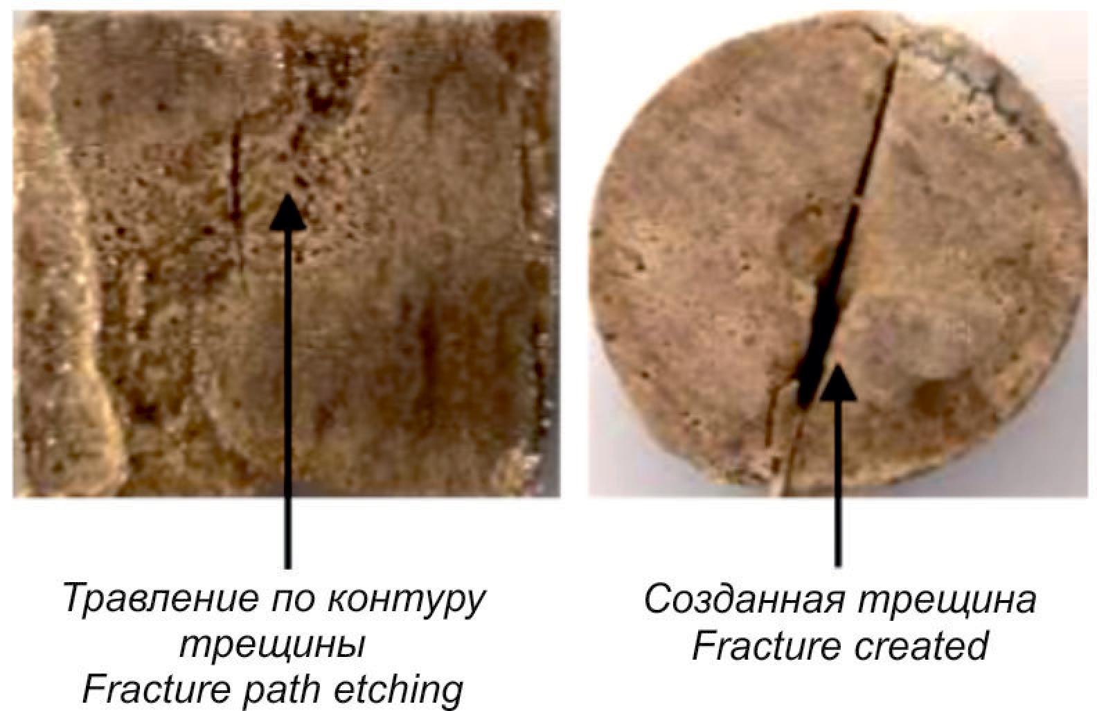- стенки трещины растворяются, происходит их травление и создание проводимых каналов;