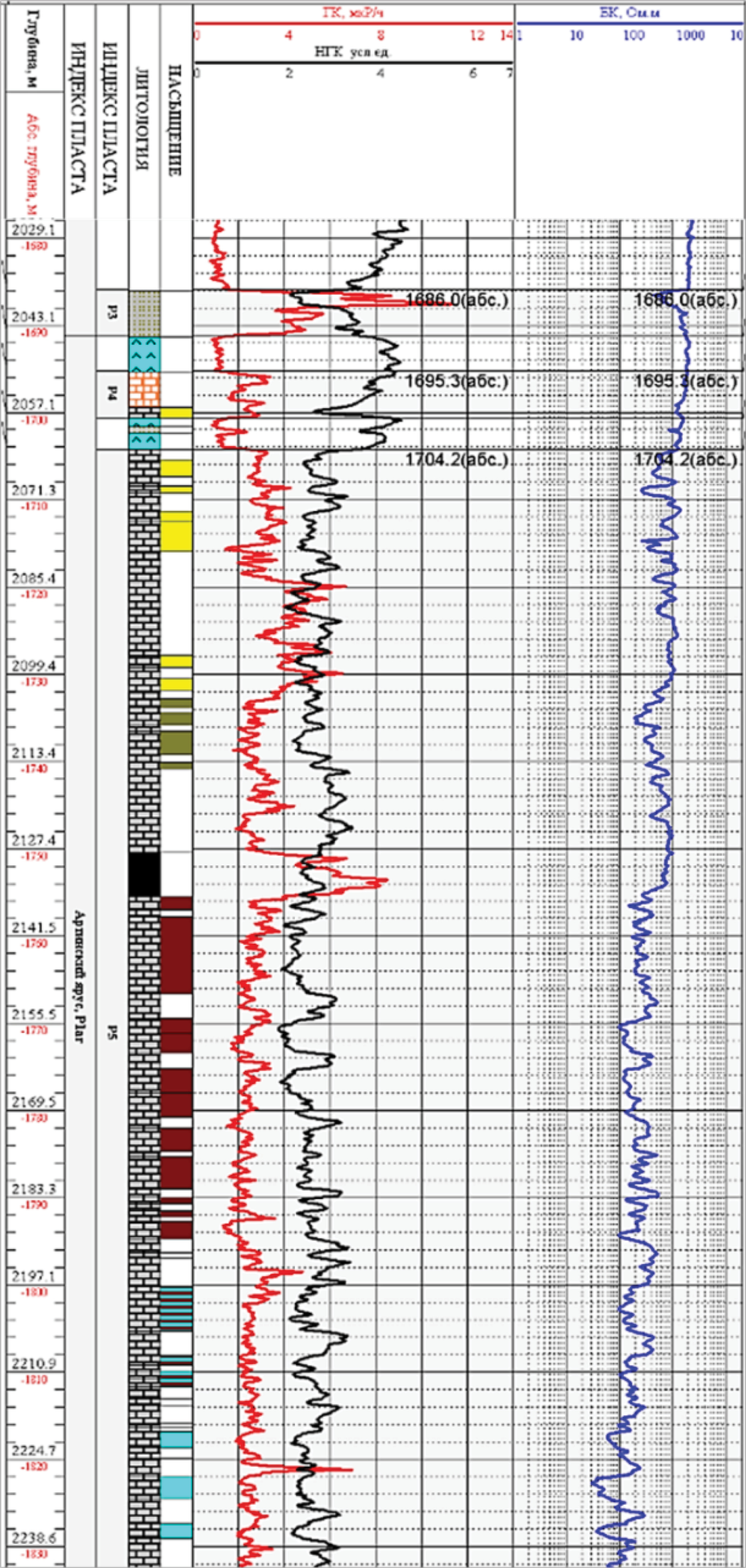 Рисунок 4. Разрез основного карбонатного объекта с разработкой методом ГРП
