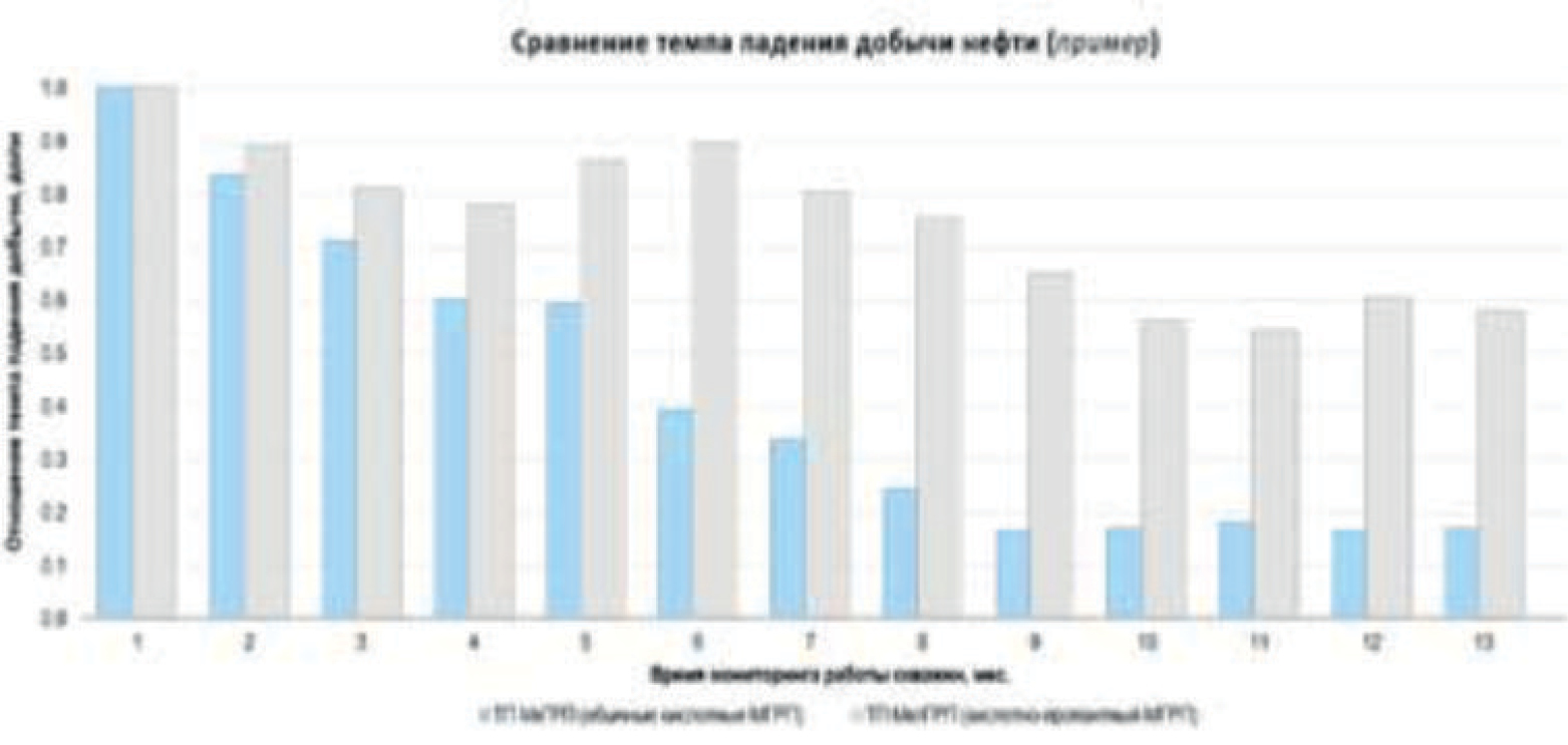 Рисунок 10. Сравнение темпа падения добычи нефти кГРП и кпГРП