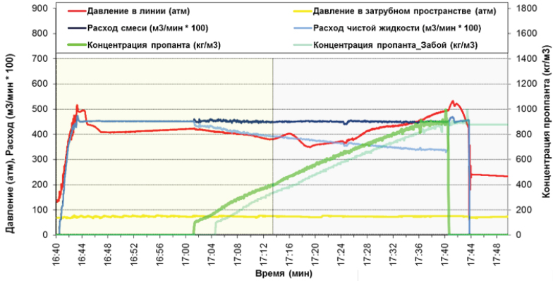 Рисунок 5. График закачки ГРП на высоковязком синтетическом полимере