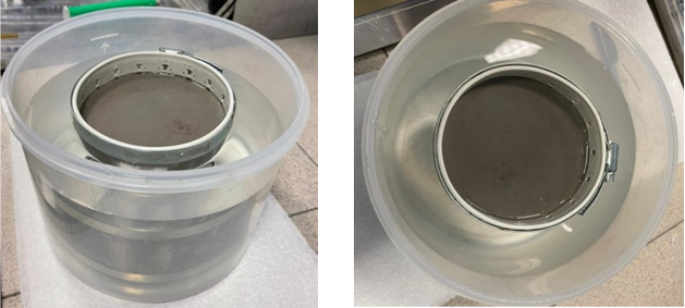 Стакан с находящимся в нём образцом бурового раствора выдерживался на дневной поверхности в течение 30 мин для образования фильтрационной корки на внутренней поверхности фильтровальной бумаги. Таким образом формировалась трёхслойная модель полупроницаемой цилиндрической перегородки.