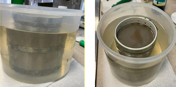 Рисунок 4. Чаша с моделью пластовой воды и погружённым в неё стаканом с образцом бурового раствора после 24-часовой выдержки образца в среде модели пластовой воды