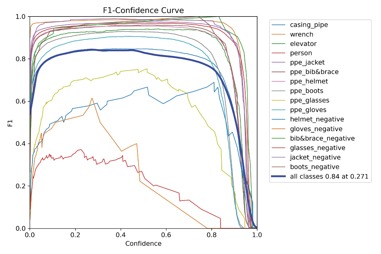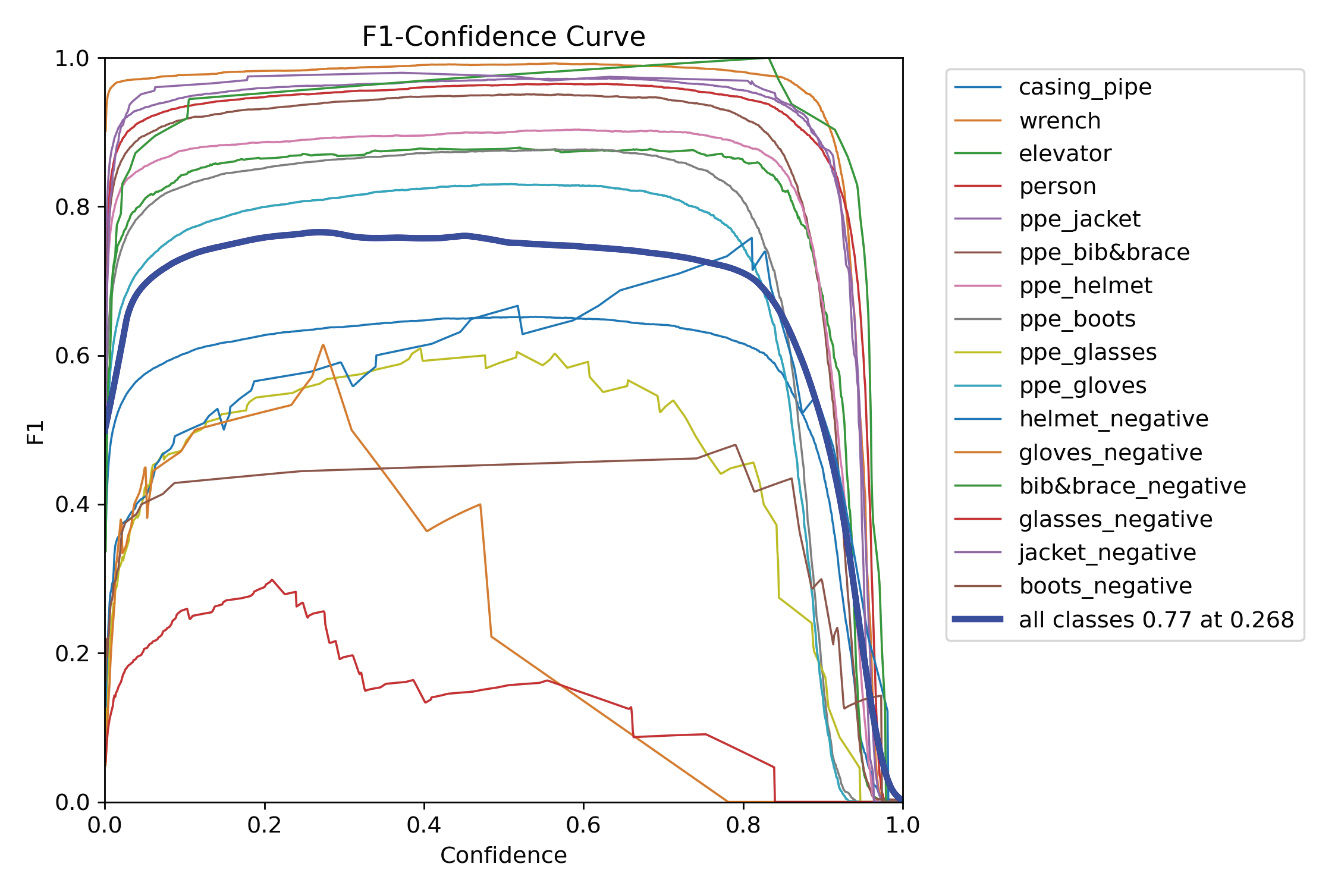 Рисунок 5. Кривая F1 – Уверенность по ограничивающим прямоугольникам