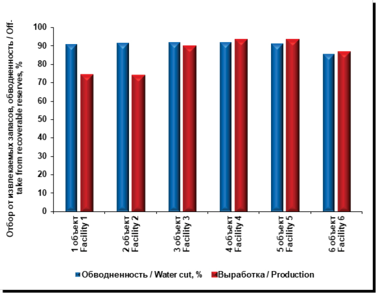 Рисунок 1. Текущая выработка по основным объектам разработки месторождения Узень