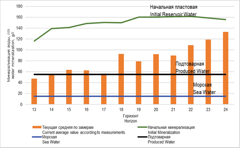 Figure 6. Distribution of Average Measured Values of Current Formation Water Mineralization by Horizons 13–24